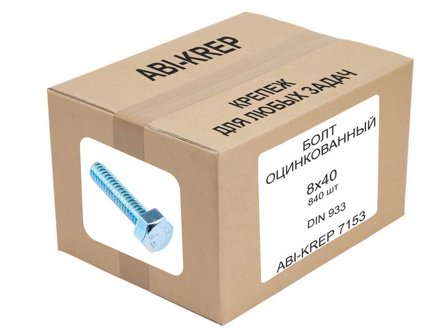 В корзину Купить в 1 клик Болт оцинкованный 8х 40 DIN 933 ( 150шт) "ABI-KREP 204947" 2,805кг, ключ 13мм, 18,7гр цена за 150шт