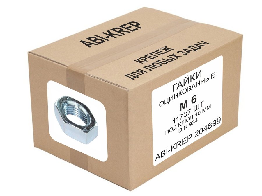 В корзину Купить в 1 клик Гайки оцинкованные М6 DIN 934 (1шт) "ABI-KREP 204899" под ключ 10мм, вес 1шт 2,19г