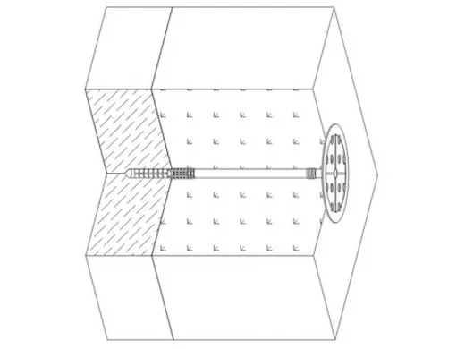 - Особенности конструкции: дюбель имеет двухсекционную зону расклинивания и широкую прижимную пластиковую шайбу диаметром 60 мм, что обеспечивает легкий монтаж и надежное крепление термоизоляционного материала к несущему основанию. Длинный размерный ряд дюбелей позволяет крепить термоизоляционный материал различной толщины