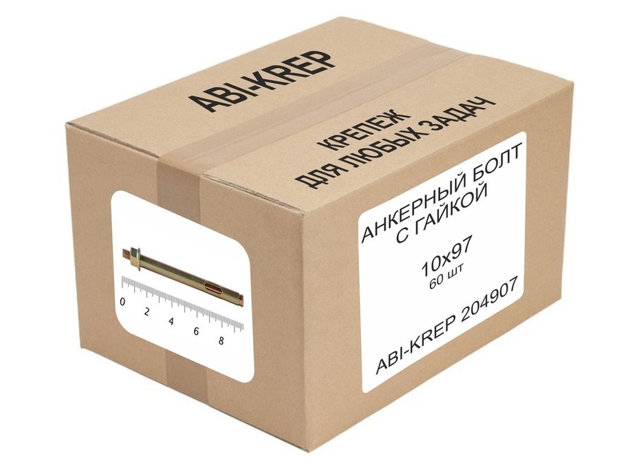 В корзину Купить в 1 клик Анкерный болт с гайкой 10х 60 (120шт) "ABI-KREP 6997" 3,84кг резьба М8, вес 1шт 32г