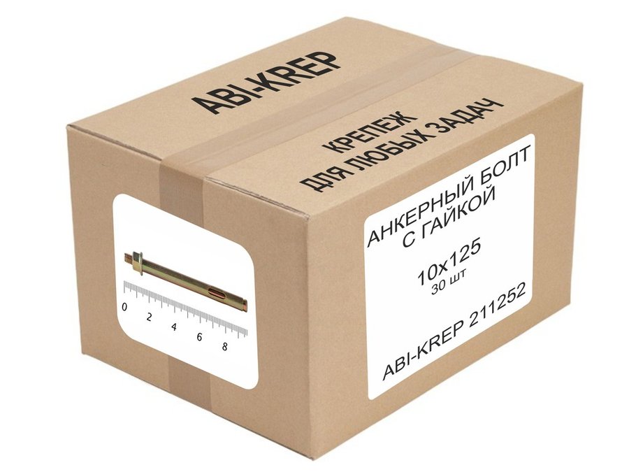 В корзину Купить в 1 клик Анкерный болт с гайкой 10х125 ( 30шт) "ABI-KREP 211252" 1,819кг резьба М8, вес 1шт 60,608г
