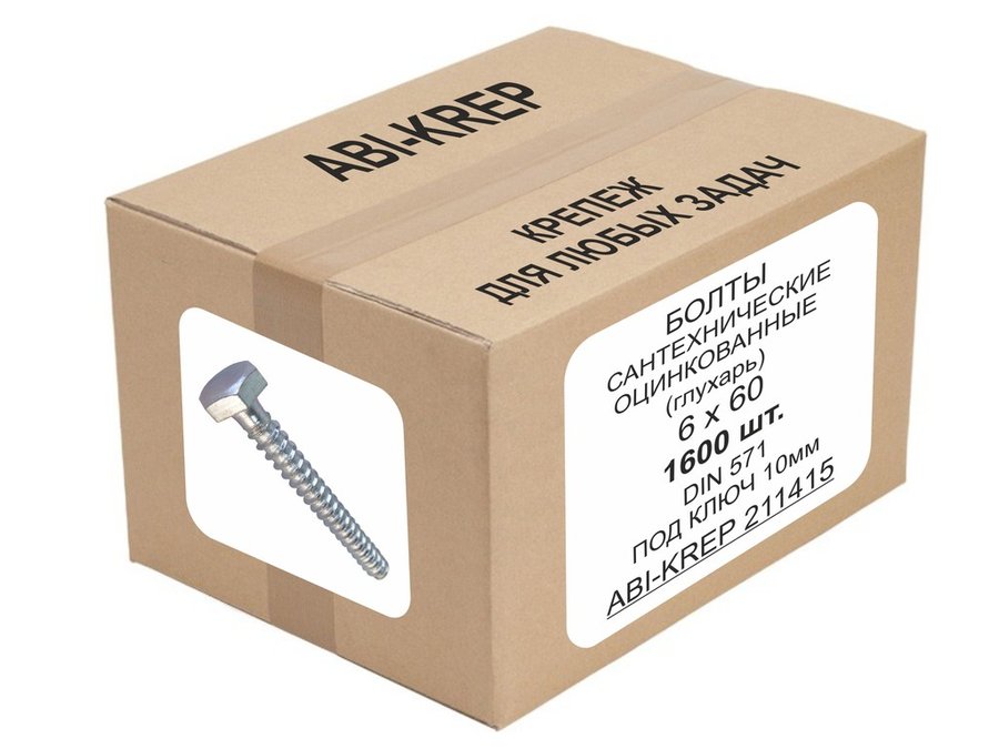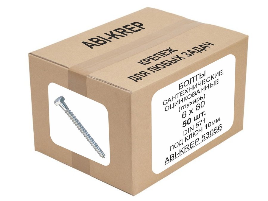 Болты сантехнические оцинкованные 10х 80 DIN 571 (250шт) "ABI-KREP 213273" 10,29кг, Глухарь, 41,16гр
