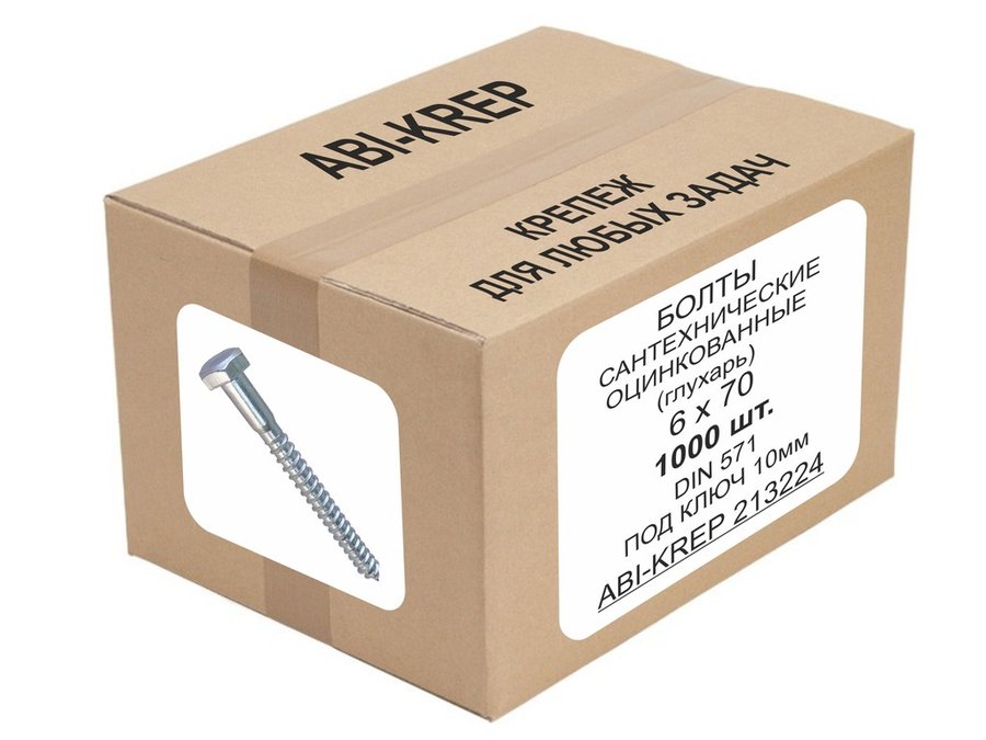 Болты сантехнические оцинкованные 10х 70 DIN 571 ( 25шт) "ABI-KREP 213268" 0,944кг, Глухарь, 37,76гр