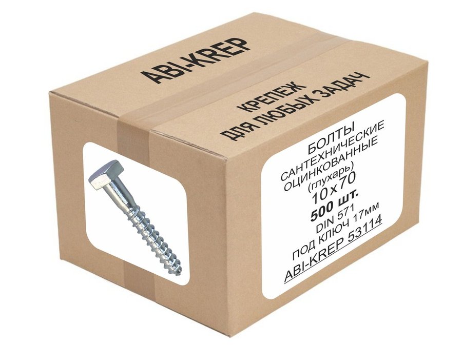 Болты сантехнические оцинкованные 10х 70 DIN 571 ( 15шт) "ABI-KREP 213269" 0,567кг, Глухарь, 37,76гр
