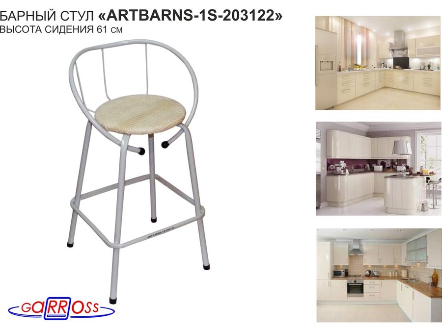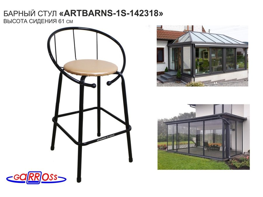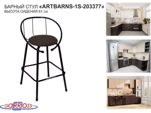 В корзину Купить в 1 клик "ARTBARNS 1S-203377" cтул барный, табурет, спинка, высота 0,61м, 22мм,черные ножки/Вольт 12, ткань