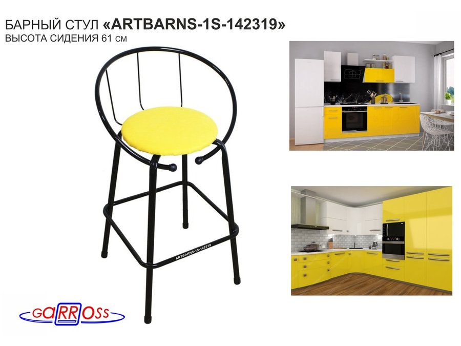 В корзину Купить в 1 клик "ARTBARNS 1S-142319" cтул барный, табурет, спинка, высота 0,61метра, 22мм,черные ножки/жёлтая ткань