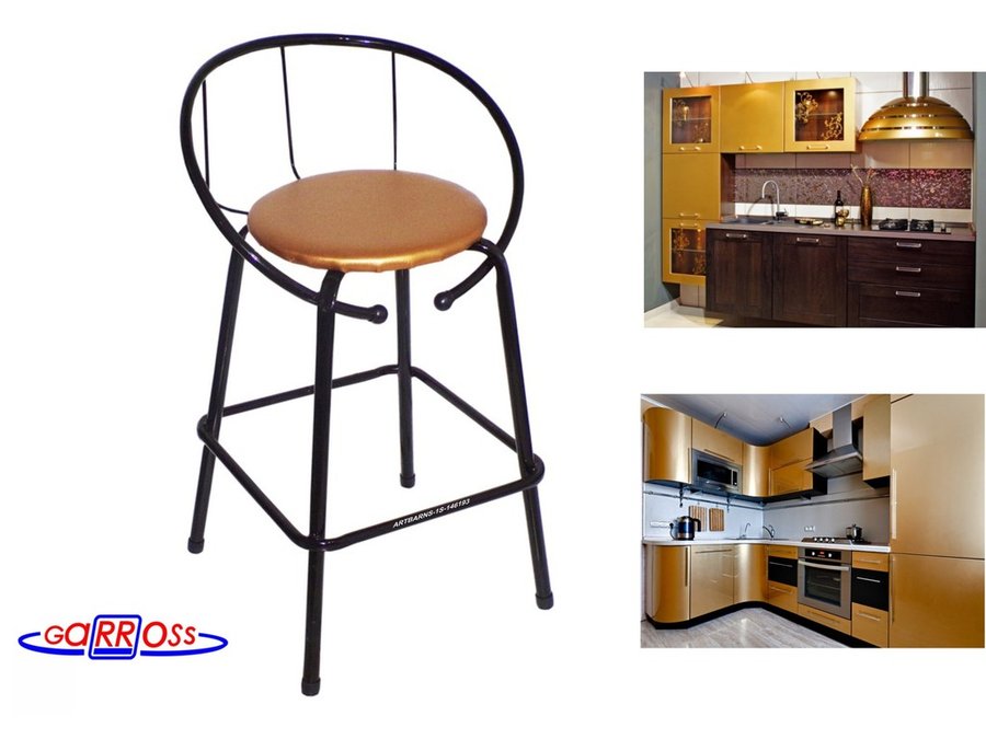 В корзину Купить в 1 клик "ARTBARNS 1S-146193" cтул барный, табурет, спинка, высота 0,61м, 22мм,черные ножки/золотой кожзам