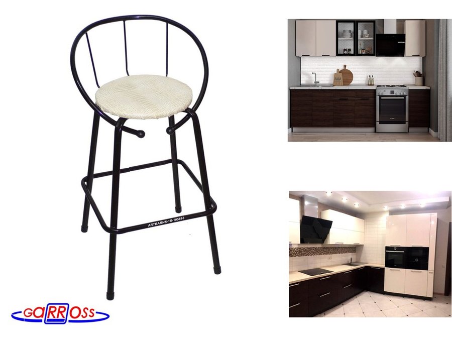 В корзину Купить в 1 клик "ARTBARNS 1S-195616" cтул барный, табурет, спинка, высота 0,61м, 22мм,черные ножки/Крок 7 кожзам