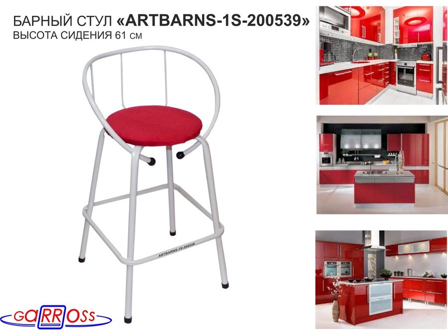 В корзину Купить в 1 клик "ARTBARNS 1S-140144" cтул барный, табурет, спинка, высота 0,61м, 22мм,черные ножки/красный, ткань