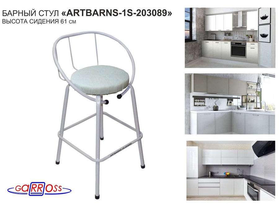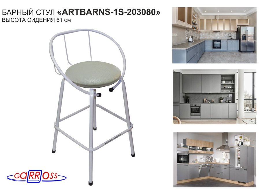 В корзину Купить в 1 клик "ARTBARNS 1S-203122" cтул барный, табурет, спинка, высота 0,61м, 22мм,серые ножки/Крок 7 кожзам