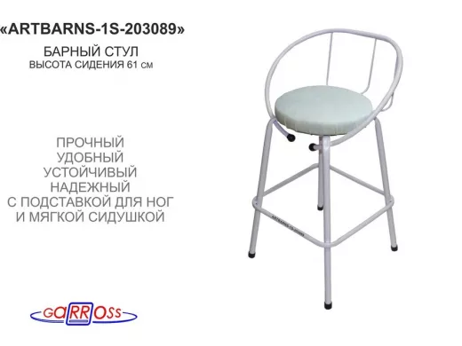 Барный стул "ARTBARNS-1S" органично дополнит интерьер модного заведения или домашней кухни. Стильная модель высотой 0,61 метра устойчиво стоит на четырех опорах с удобными подножками.