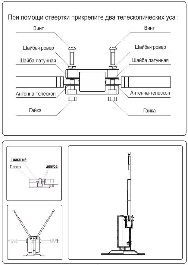 - Телескопичекие вибраторы регулируются по длине и углу наклона для настройки на максимальный уровень принятого сигнала