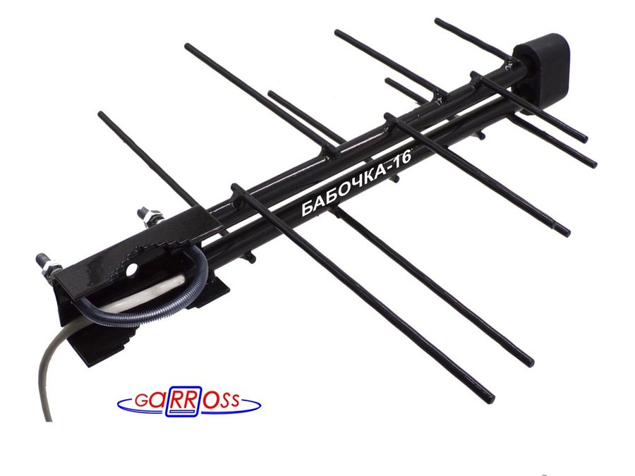 • "БАБОЧКА-16" ЧЁРНАЯ уличная телевизионная антенна предназначена для приема цифрового DVB-T2 и аналогового телевизионного сигнала ДМВ диапазона