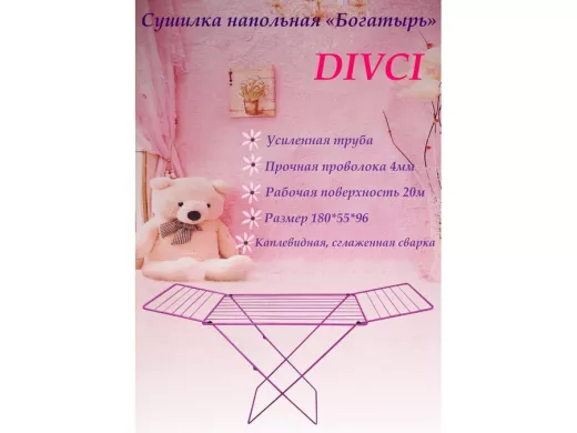 - "БОГАТЫРЬ" DIVCIсушилка напольная РОЗОВАЯ 20 метров, предназначена для сушки белья