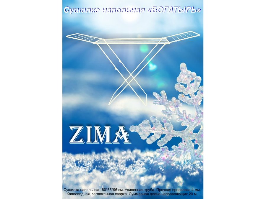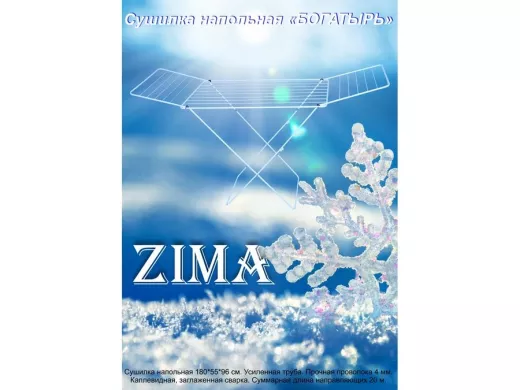 • "БОГАТЫРЬ" ZIMA сушилка напольная БЕЛАЯ 20 метров, предназначена для сушки белья