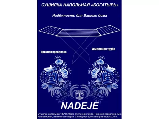 • "БОГАТЫРЬ" NADEJE сушилка напольная СИНЕ-БЕЛАЯ 20 метров, предназначена для сушки белья