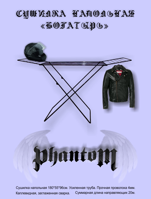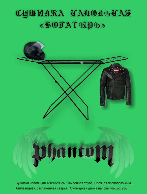 - "БОГАТЫРЬ" PHANTOM сушилка напольная ЧЁРНАЯ 20 метров, предназначена для сушки белья