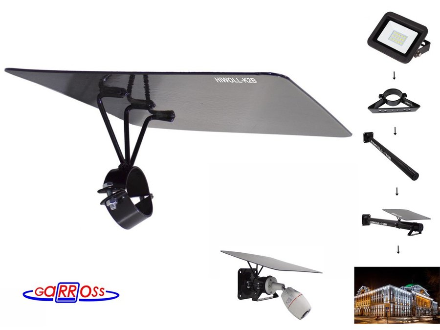В корзину Купить в 1 клик Кронштейн-козырёк "HIWOLL-83529" (K2B) 27х27см, с хомутом 51мм защиты камеры, сталь 2мм, чёрный