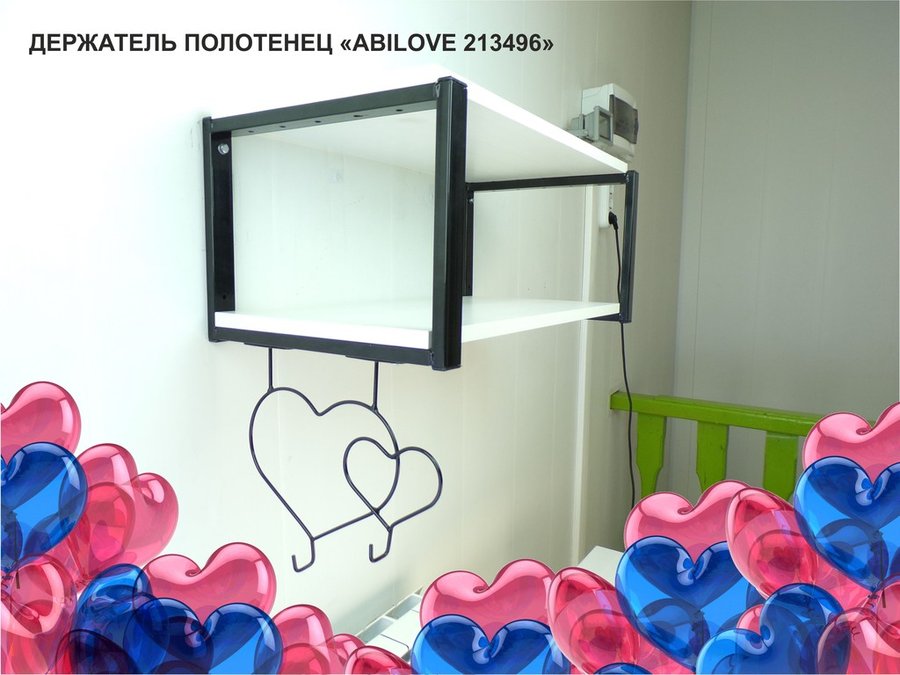 Держатель полотенец под полку, вешалка для вещей, два сердца с крючками, чёрный "ABILOVE 213496"