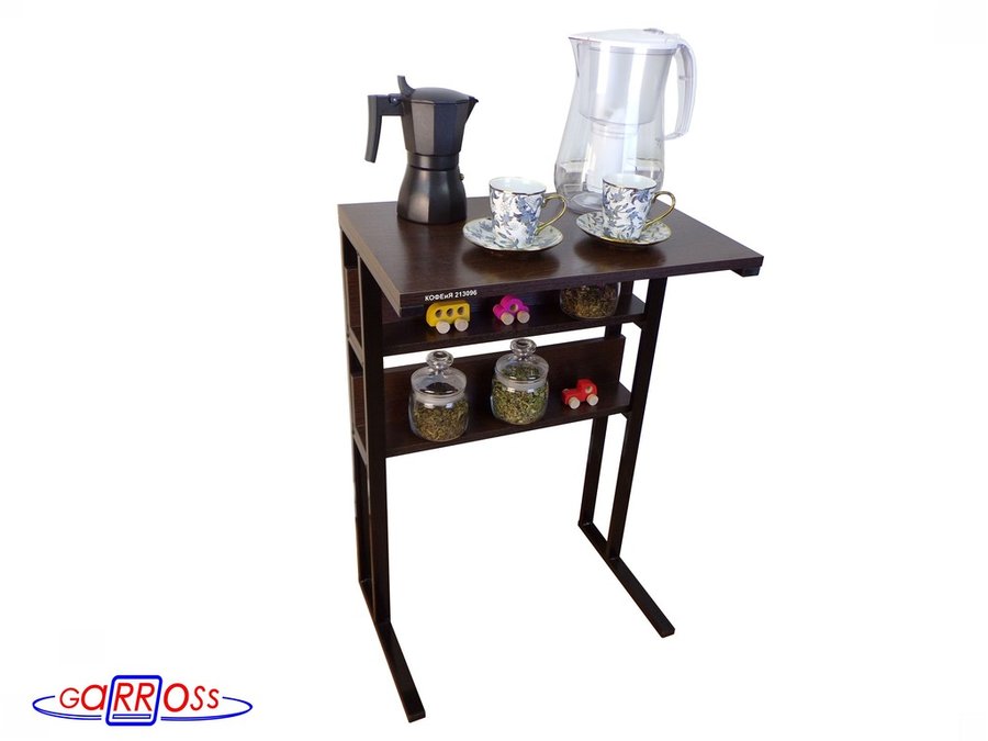 Столик для кофемашины "КОФЕиЯ 213096" высота 79см с двумя полками для стаканов и банок, черный,венге