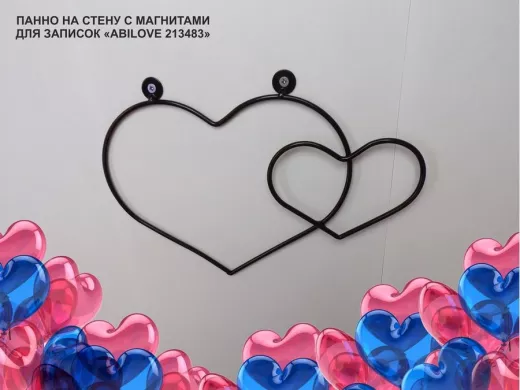 Панно на стену с 3 магнитами для записок и фотографий, два сердца, чёрный "ABILOVE 213483"