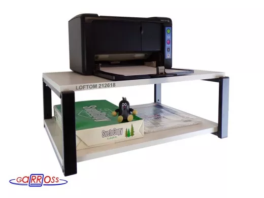 Полка для принтера, подставка для МФУ, 21см черный "LOFTOM 212618" две полки 35х54см, сосна выбелен.