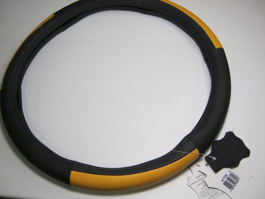В корзину Купить в 1 клик Оплетка на руль 40 см. L 4773E кожа черная+желтая кожа вставка сверху "гладкая"