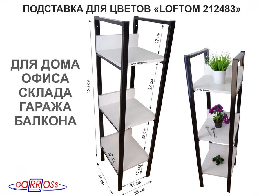 В корзину Купить в 1 клик Подставка для цветов, три полки, серый "LOFTOM-212487" сосна, высота 120, ширина 30, глубина 35 см