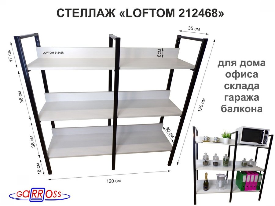 Стеллажи универсальные "LOFTOM" с 3 полками 1,2х0,3 м, высотой 1,2 м, три каркаса