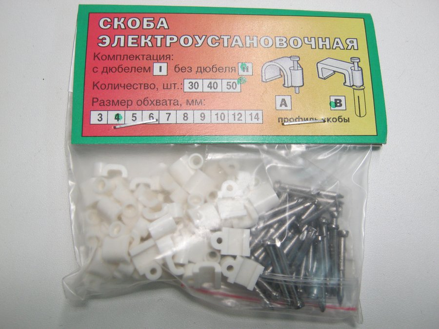 В корзину Купить в 1 клик Скоба 4мм (50шт) тип B электроустановочная для прямоугольного кабеля "Mego"