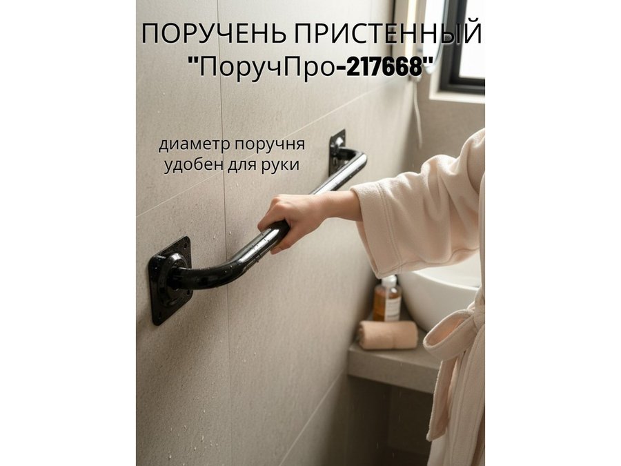 В корзину Купить в 1 клик Поручень 80см "ПоручПро-217691" пристенный, вылет 8см, чёрный, 2 опоры, диаметр 32мм