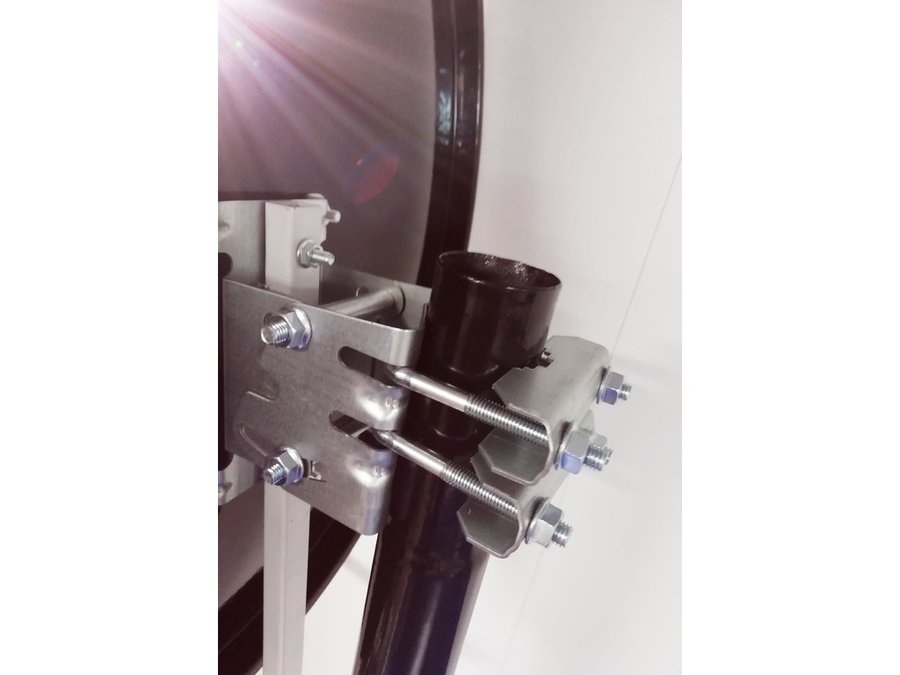 - Кронштейн усилен 4-мя стальными косынками, это позволяет получить большую прочность для крепления спутниковых тарелок 0,6м и любых других антенн