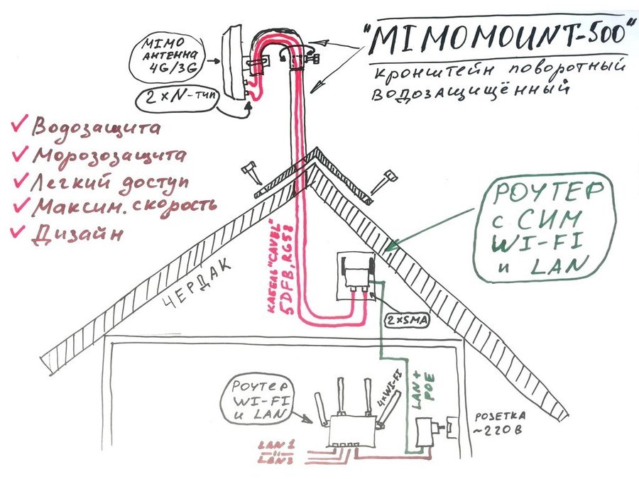 - Появляется возможно красиво установить антенну для мобильного интернета, добиться высоких скоростей и длительного срока службы.