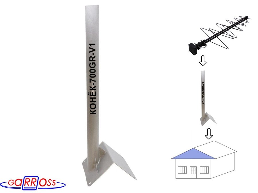 В корзину Купить в 1 клик Кронштейн антенный на конёк крыши "КОНЁК-V1-700GR-112275" серый, высота 70 см, диаметр 50 мм