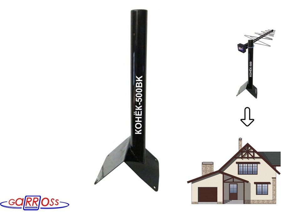 В корзину Купить в 1 клик Кронштейн антенный на конёк крыши "КОНЁК-V1-700BK-92169" черный, высота 70 см, диаметр 50 мм