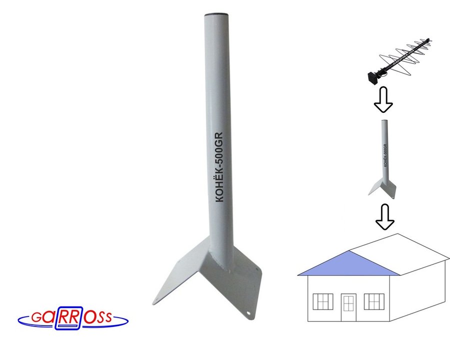 В корзину Купить в 1 клик Кронштейн антенный на конёк крыши "КОНЁК-500GR-17384" серый, высота 50 см, диаметр 50 мм