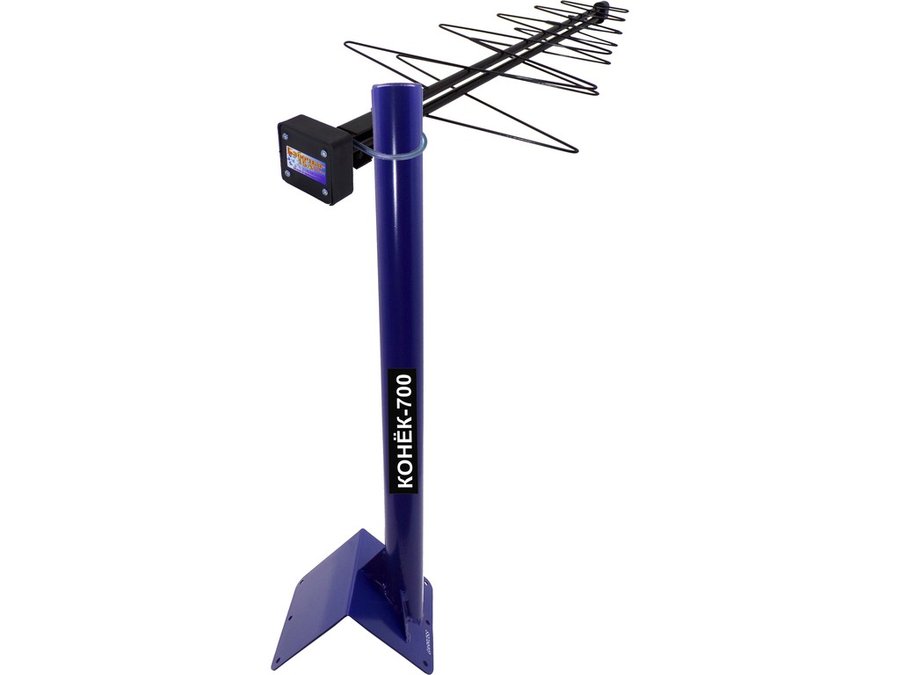 - "КОНЁК-700-НЕОБЖАТЫЙ" СИНИЙ антенный кронштейн предназначен для установки антенн мобильного интернета, спутникового и эфирного цифрового телевидения, антенн радиостанций всех диапазонов. Крепится в самую высокую точку дома на конёк двускатной крыши