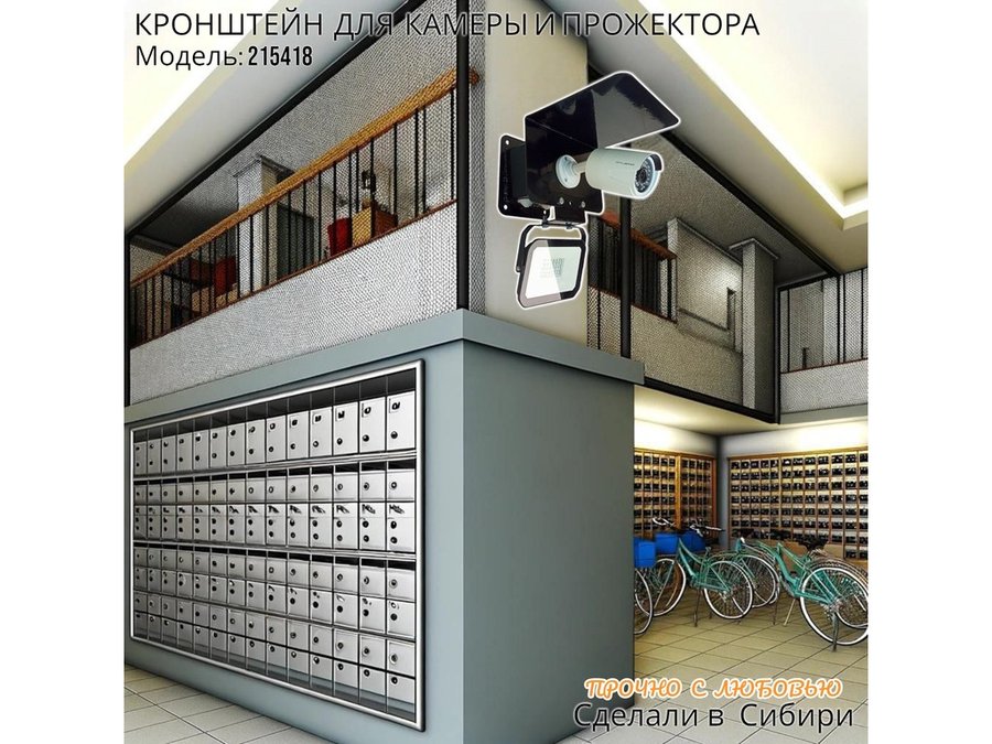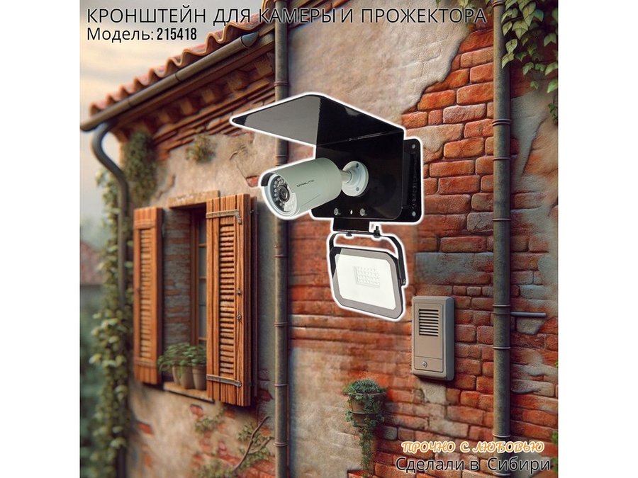 Современное надёжное решение для монтажа видеокамеры и прожектора на стену здания.