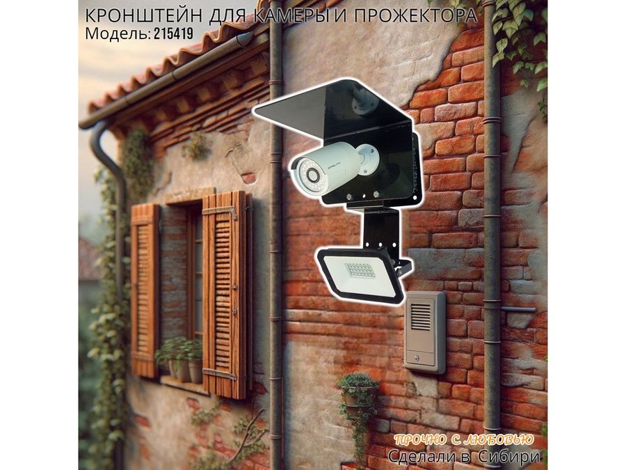 Современное надёжное решение для монтажа видеокамеры и прожектора на стену здания.