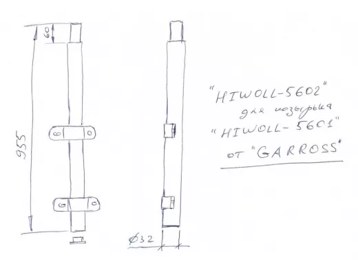 Кронштейн "HIWOLL-5602GR" серый, обжатая труба с 4 отв., 0,9м, подходит для козырька "HIWOLL-5601GR"