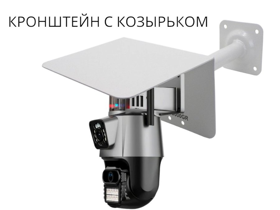 В корзину Купить в 1 клик Кронштейн для поворотной камеры с вылетом 25см и козырьком для защиты "HIWOLL-216163" серый, сталь
