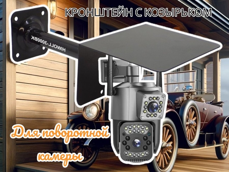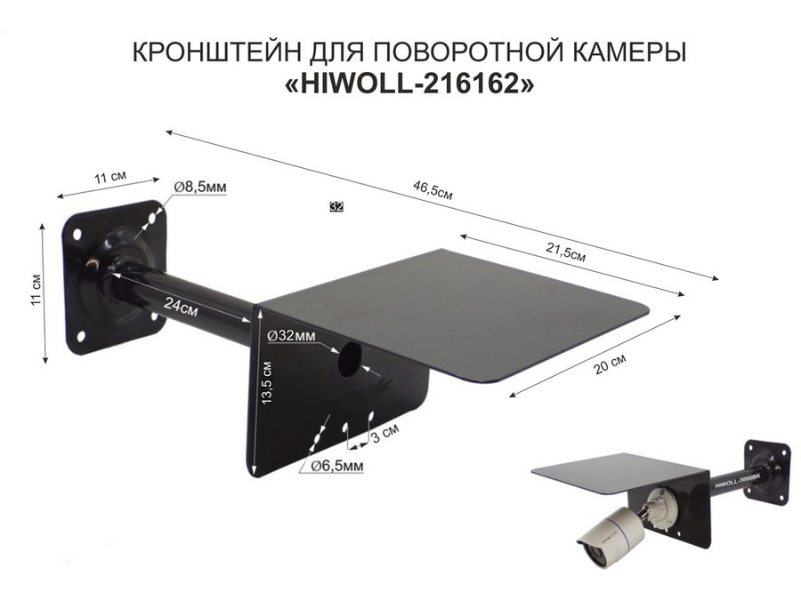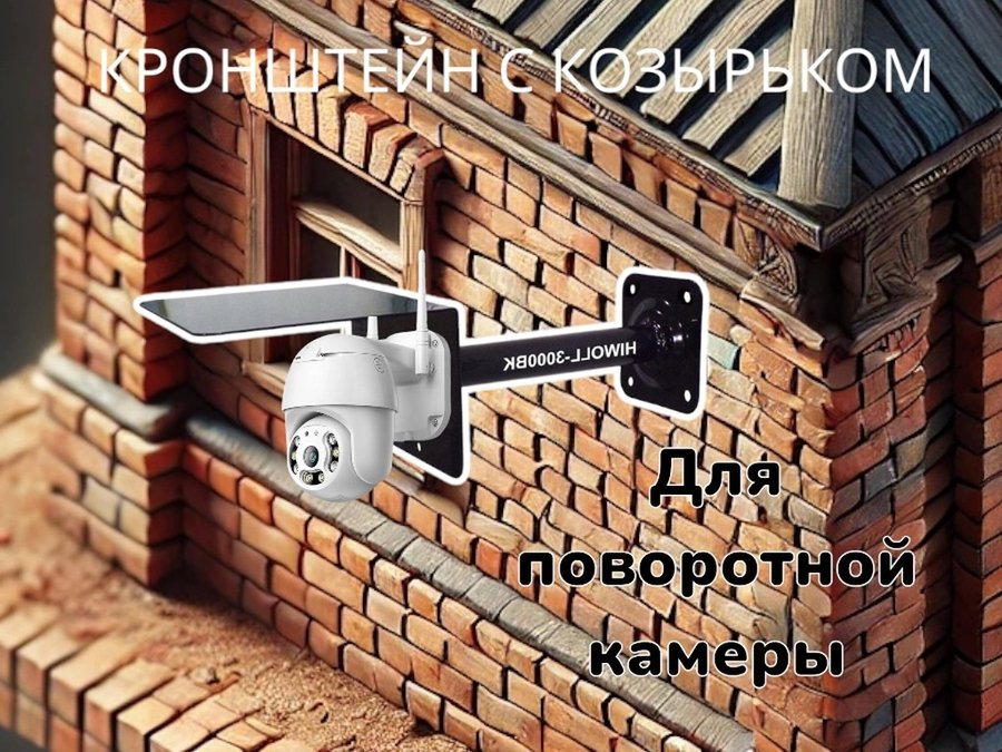 Кронштейн для поворотной камеры с вылетом 25см и козырьком для защиты "HIWOLL-216162" черный, сталь