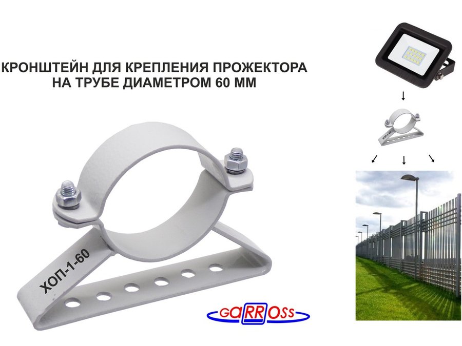 В корзину Купить в 1 клик Кронштейн для прожектора на трубу диаметром 60мм "ХОП-1-60-161073" сталь, серый