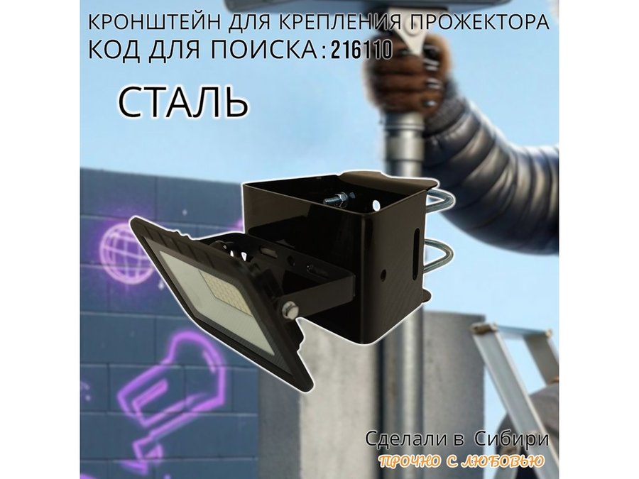 В корзину Купить в 1 клик Кронштейн широкий для крепления прожектора на трубе до 51мм "ПРОЖЕКРЕП-216110" сталь, цвет черный