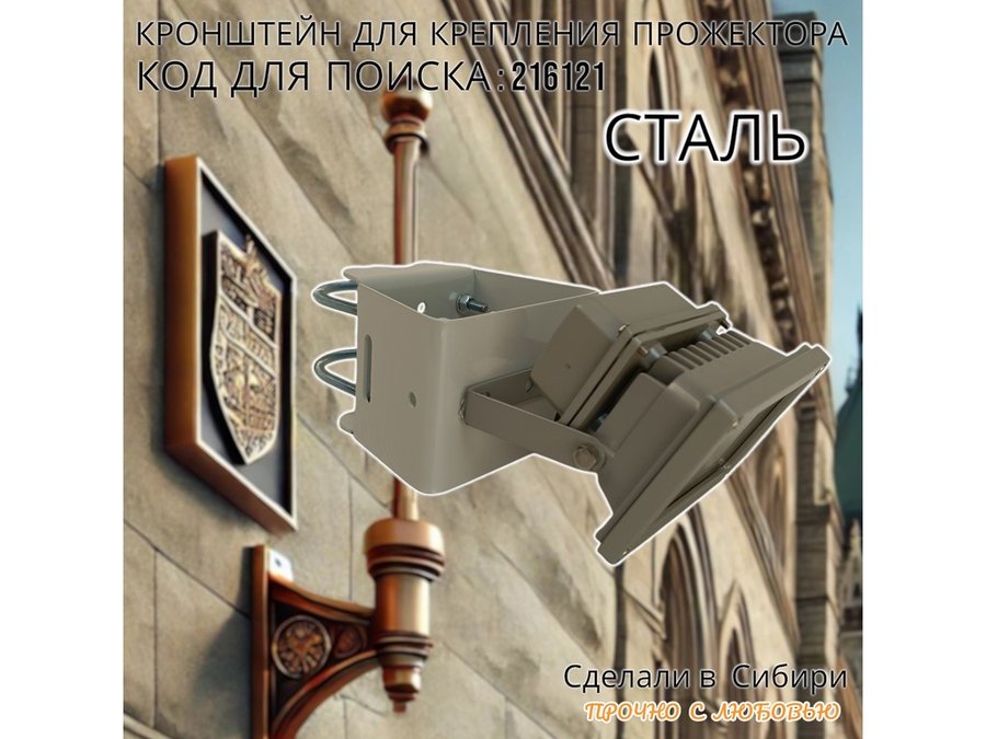 В корзину Купить в 1 клик Кронштейн широкий для крепления прожектора на трубе до 51мм "ПРОЖЕКРЕП-216121" сталь, цвет серый