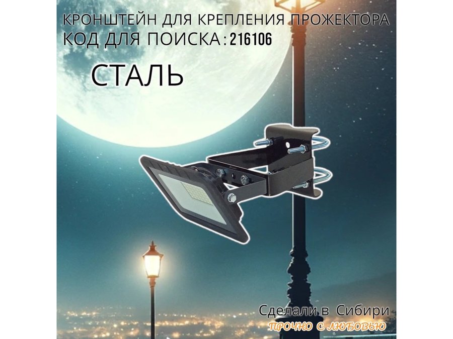 - Кронштейн усиленный предназначен для крепления светодиодных прожекторов на трубе диаметром от 15 до 51мм.