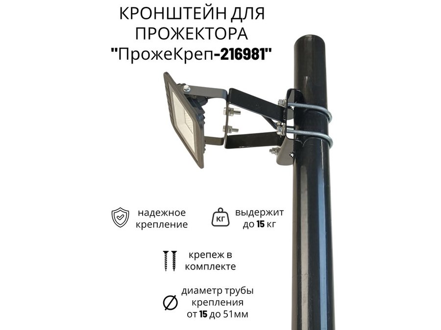 Кронштейн усиленный с отверстием для прожектора на трубе до 51мм "ПрожеКреп-216981" сталь, черный