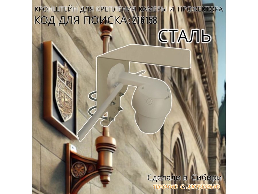 - Универсальный кронштейн с козырьком предназначен для крепления камеры наблюдения на трубе диаметром от 15 до 51мм.