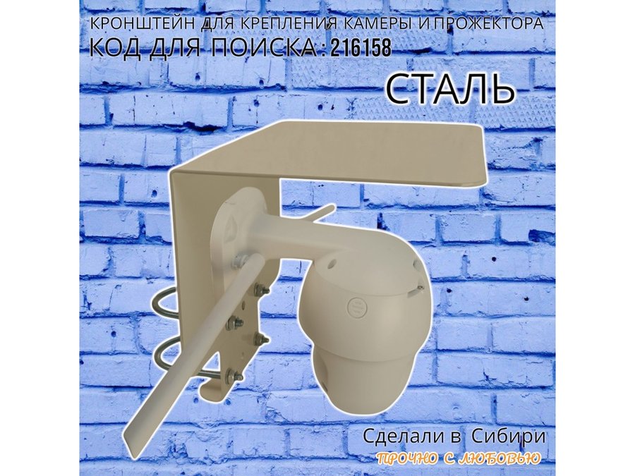 Кронштейн с козырьком на трубу для камеры и прожектора "ПРОЖЕКРЕП-216158" сталь, два хомута, серый