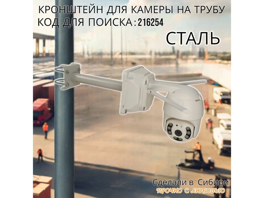 - Кронштейн предназначен для крепления поворотной или цилиндрической камеры на трубу.